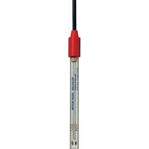 Ionen in Bewegung2-Pol-Leitfähigkeitssensor, Polysulfonschaft, 120 mm Schaftlänge, Zellkonstante 1, 1 m Kabel , 2 x 4 mm Bananenstecker.