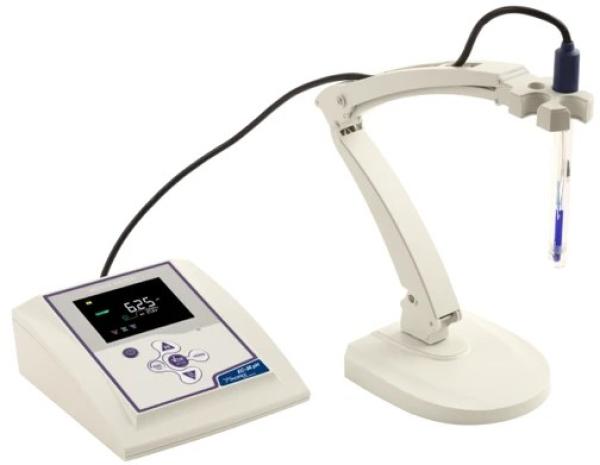 Gerät mit pH-Elektrode 201T DHS, mit Stativ und farbiger Pufferlösung pH 4 und pH 7, Software PCLink, USB-Kabel