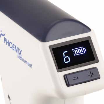 Dabei zeigt das LCD-Display sowohl die gewählte Pipettierstufe als auch den Ladezustand des Li/Ion-Akkus an.