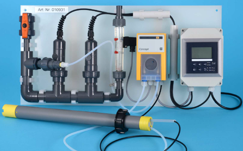 Zur Messung und Dosierung im Bypass. Galvanisch getrennter und symmetrischer Messeingang für galvanische Elektrolyte geeignet. Durchflußsensor, Füllstandsensor und Schlauchbruchsensor für sicheren Betrieb